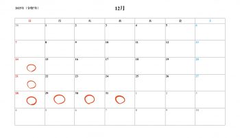 赤丸以外の日でも個人的に休む時がありますが、基本的に事務所に人がいるであろうカレンダーとなっています。