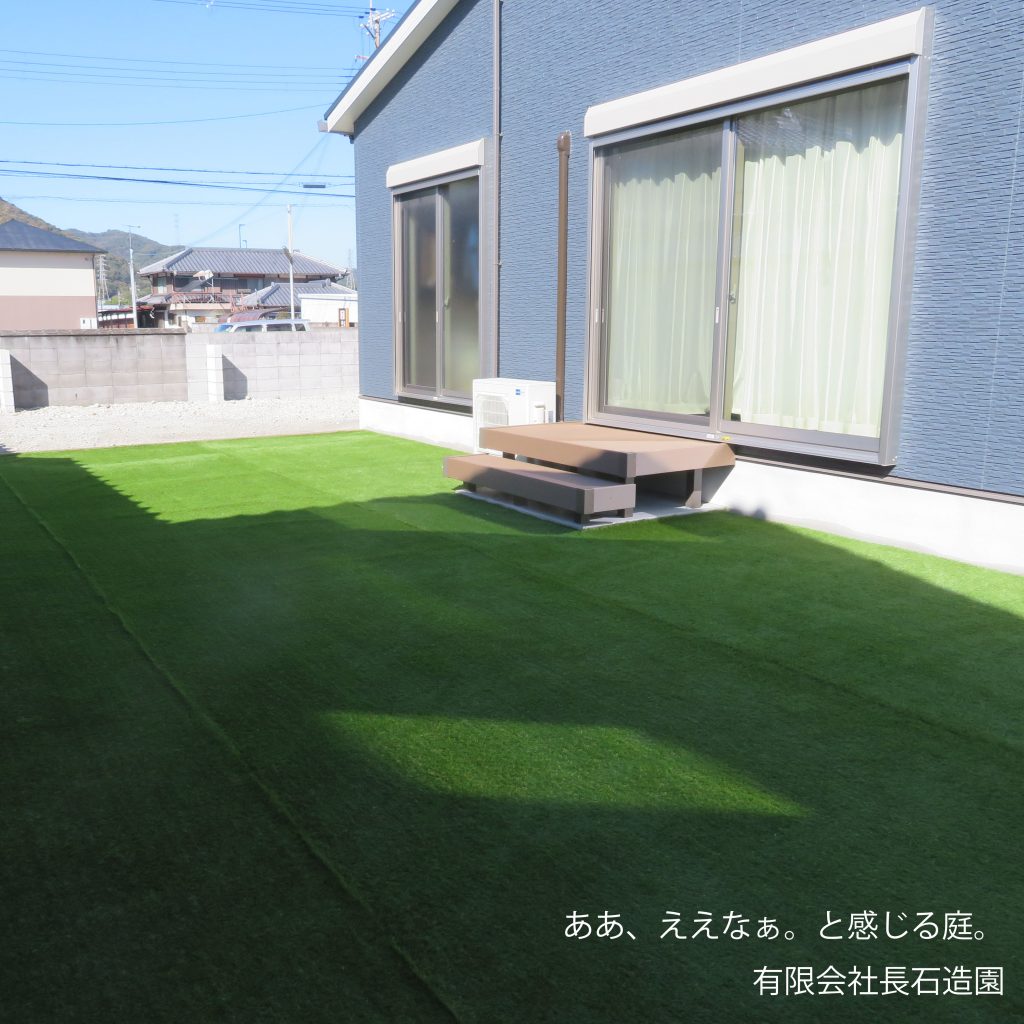 ・草ひきが大変なので人工芝で。