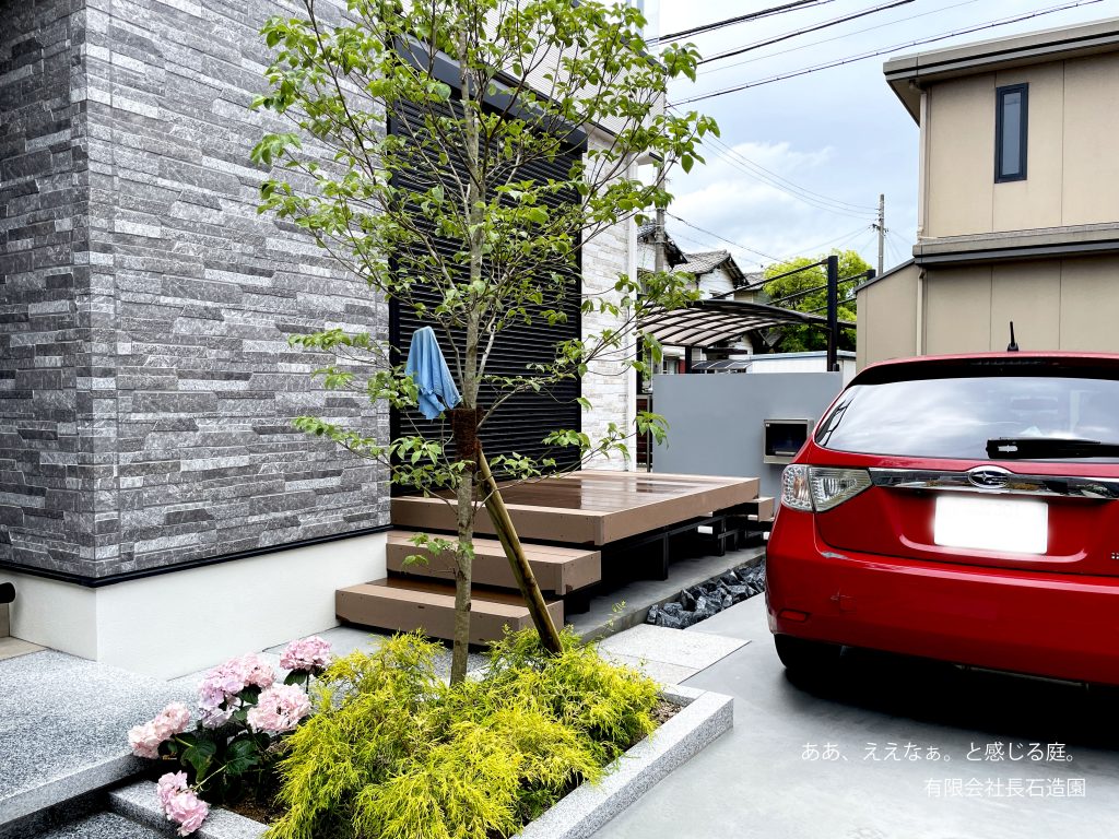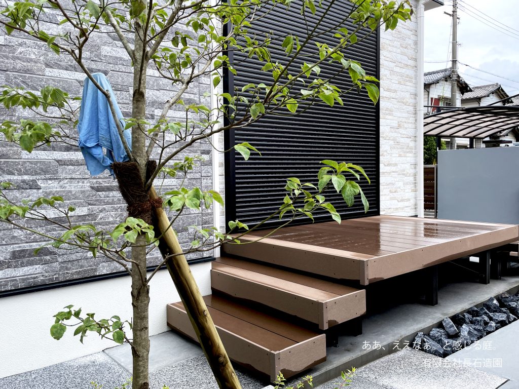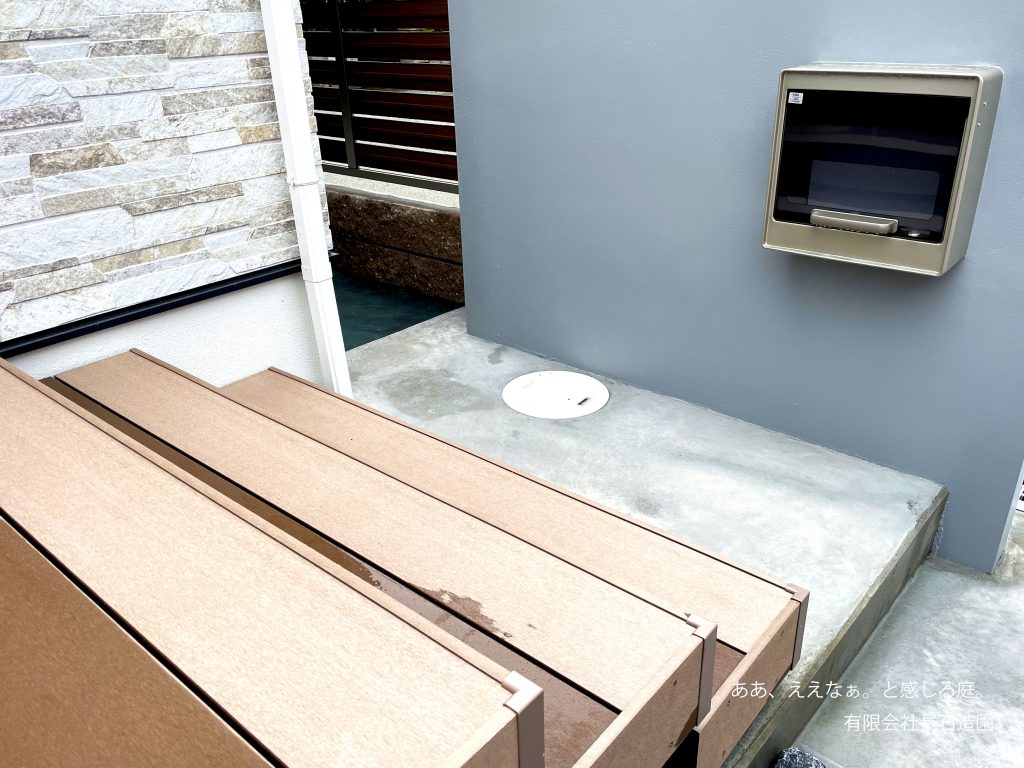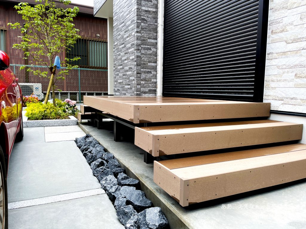 近道デッキのステップを道路側にも設置したので、リビングからポストへの近道に。