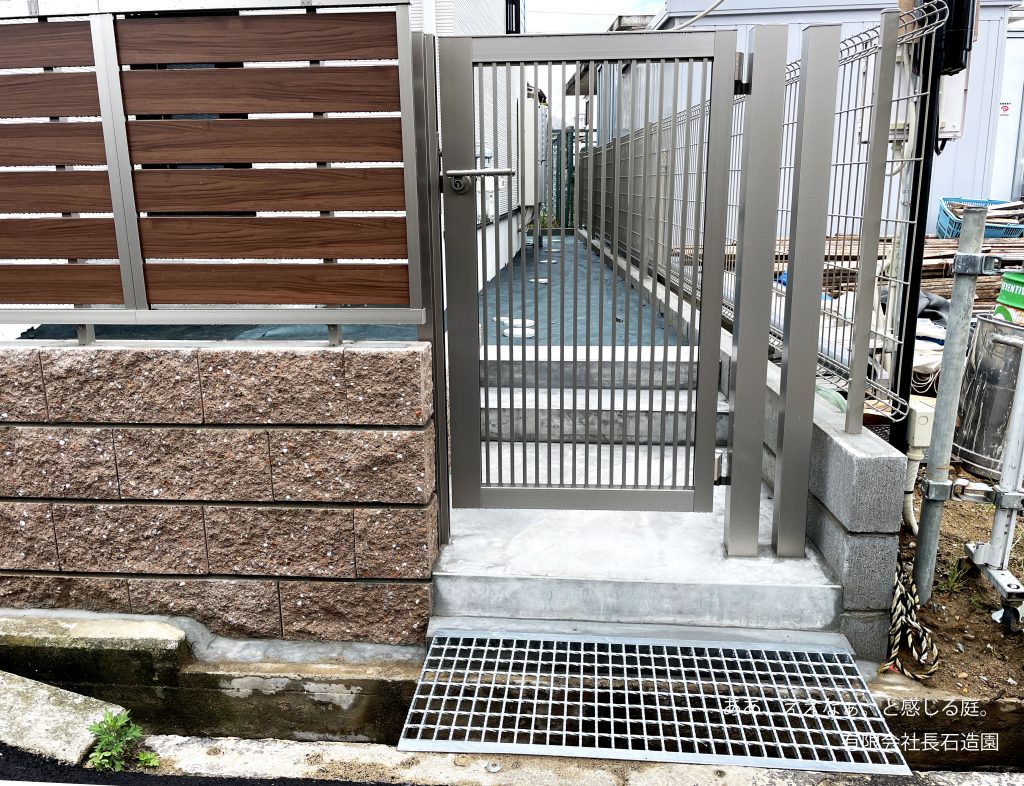 LED付き表札、ポスト、インターホンが設置された造作門柱です。
