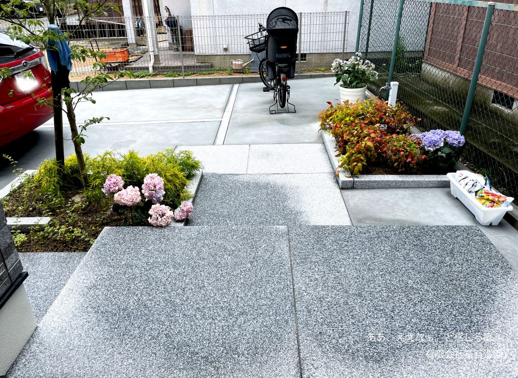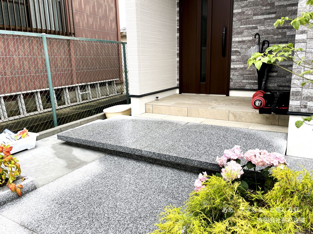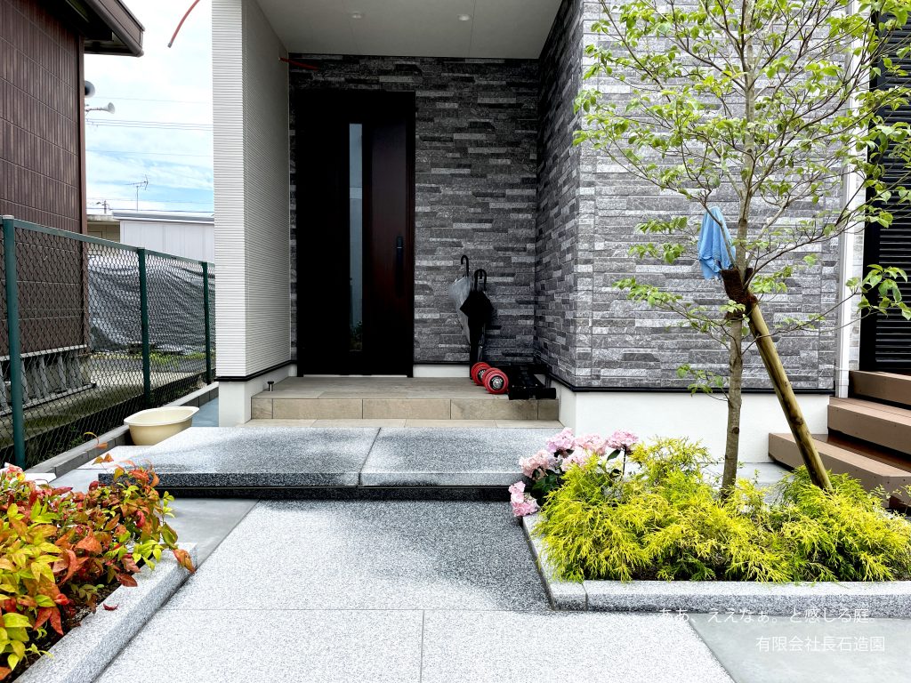 アプローチ大判の御影石をつかった板石を使用したアプローチ。