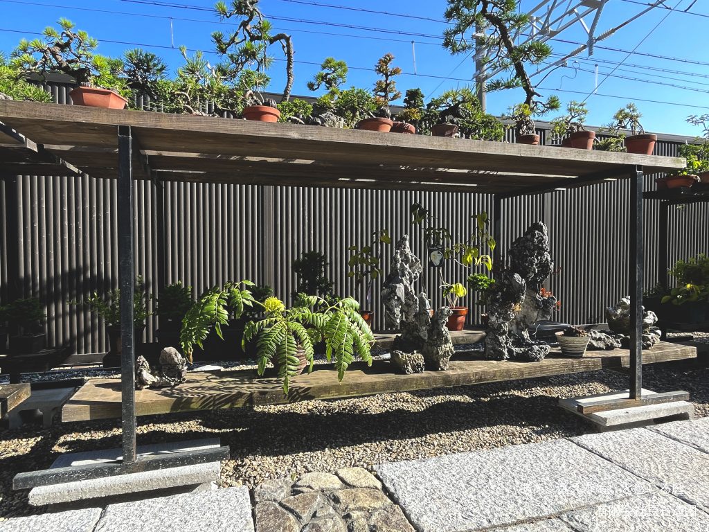 空いているスペースには、ここぞとばかりに盆栽が飾られています。